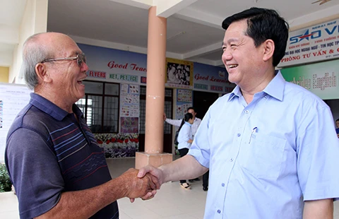 Bí thư Thành ủy TP.HCM Đinh La Thăng đang trao đổi với cử tri huyện Củ Chi ngày 10-5. Ảnh: HOÀNG GIANG
