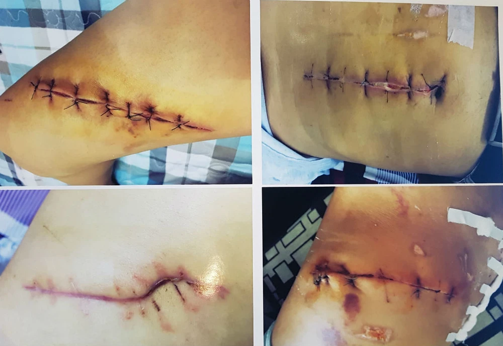 Những vết chém dài mà nhóm giang hồ truy sát vợ chồng bà Hương.