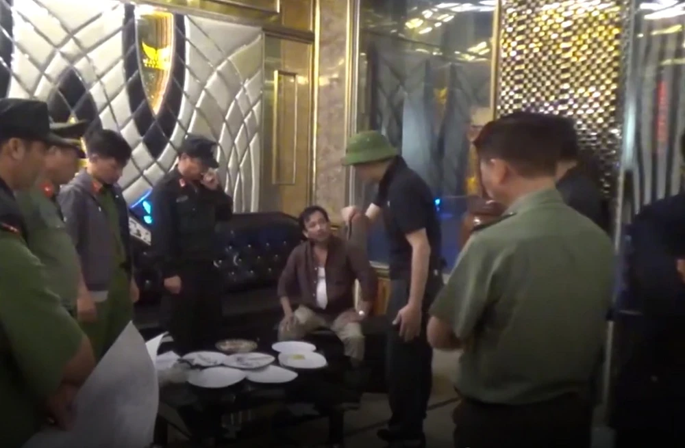 Tại thời điểm kiểm tra, có hàng trăm nam nữ đang “bay” theo tiếng nhạc, trên bàn và dưới gầm bàn, nhiều viên dạng thuốc, gói chất bột màu trắng được phát hiện.