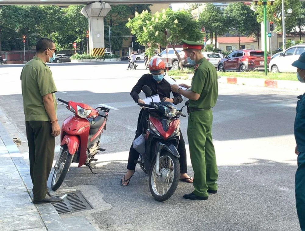 Lực lượng chức năng Hà Nội kiểm tra người ra đường
