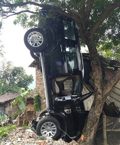 Ảnh: Chiếc xe ô tô gây tai nạn tại hiện trường (Ảnh: Otofun)