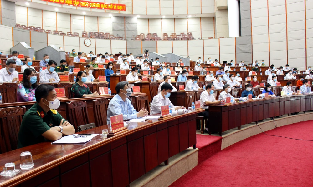 Quang cảnh Hội nghị Ban Chấp hành Đảng bộ tỉnh lần thứ 5, nhiệm kỳ 2020-2025. Ảnh: SƠN NGUYỄN