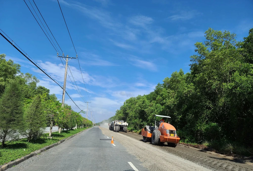 Đường Rừng Sác, tuyến đường huyết mạch từ TP.HCM về Cần Giờ đang được thi công. Ảnh: KIÊN CƯỜNG
