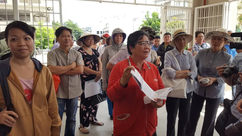 Người dân Thủ Thiêm túc trực để chờ gặp Bí thư Nguyễn Thiện Nhân. Ảnh: TÁ LÂM