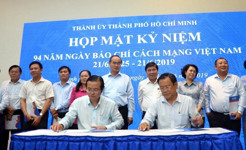 Dịp này, Thành ủy TP.HCM đã ký kết biên bản ghi nhớ phối hợp công tác truyền thông với 15 cơ quan báo chí TP và trung ương đóng trên địa bàn, trong đó có báo Pháp Luật TP.HCM.