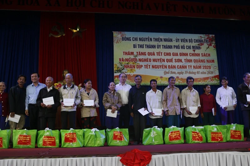 Trong chuyến thăm và tặng quà tết lần này, Bí thư Thành ủy TP.HCM Nguyễn Thiện Nhân đã thăm hỏi, động viên và tặng quà các hộ gia đình chính sách tiêu biểu, hộ nghèo thuộc huyện Núi Thành, Quế Sơn và Thăng Bình.