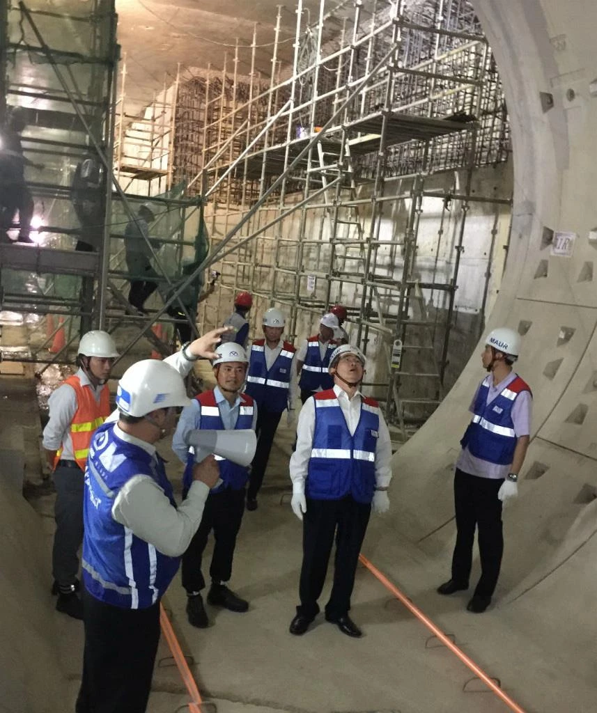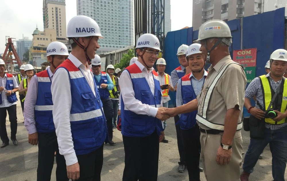 Trước cửa vào khu vực thi công nhà ga trung tâm Bến Thành, Bí thư Nguyễn Thiện Nhân bắt tay, thăm hỏi các kỹ sư, chuyên gia Nhật Bản tham gia xây dựng công trình. Có người đã gắn bó với công trình 15-16 năm, từ giai đoạn xây dựng tiền dự án. "Các bạn là vốn quý của tình hữu nghị Nhật Bản - Việt Nam"- Bí thư Nhân nói.