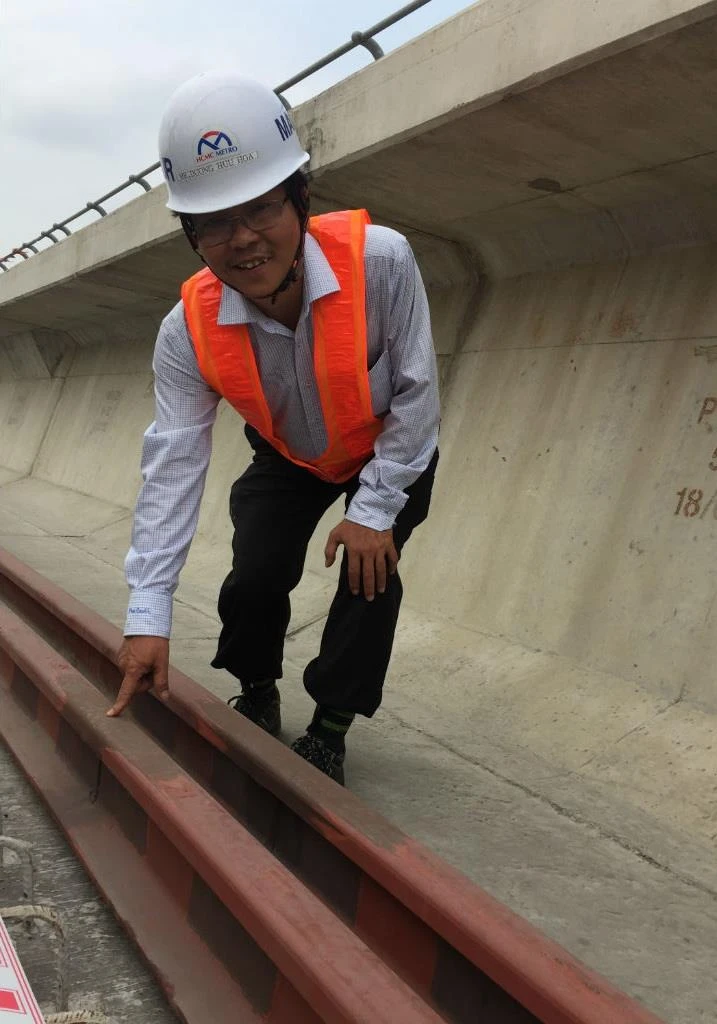 Theo ông Dương Hữu Hòa, Giám đốc Ban 1, chỉ huy trưởng xây dựng tuyến metro số 1 (người trong hình) đến nay đã hàn nối được hơn 1.000/34.200 m ray; lắp đặt được hơn 3.900 m ray... Tới đây sẽ là các công việc đổ bê tông nền ray, chạy hệ thống điện chạy tàu treo trên cao....