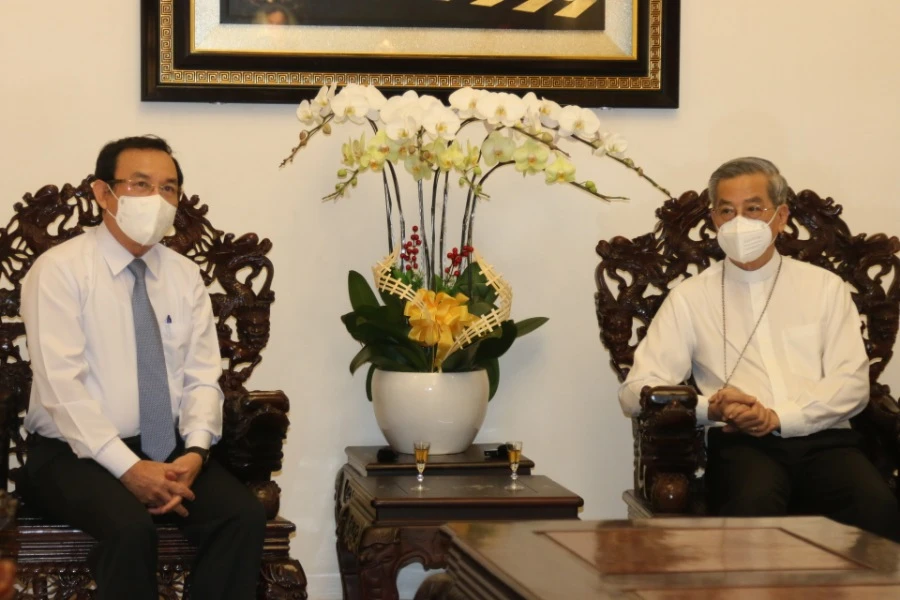 Chiều 21-12, đoàn lãnh đạo TP.HCM do ông Nguyễn Văn Nên, Ủy viên Bộ Chính trị, Bí thư Thành ủy TP.HCM làm trưởng đoàn đã đến thăm và chúc mừng Tòa Tổng Giám mục Tổng Giáo phận TP.HCM và Giám mục Nguyễn Năng, Tổng Giám mục Tổng Giáo phận TP.HCM nhân dịp lễ Giáng sinh năm 2021 và Tết Dương lịch năm 2022.