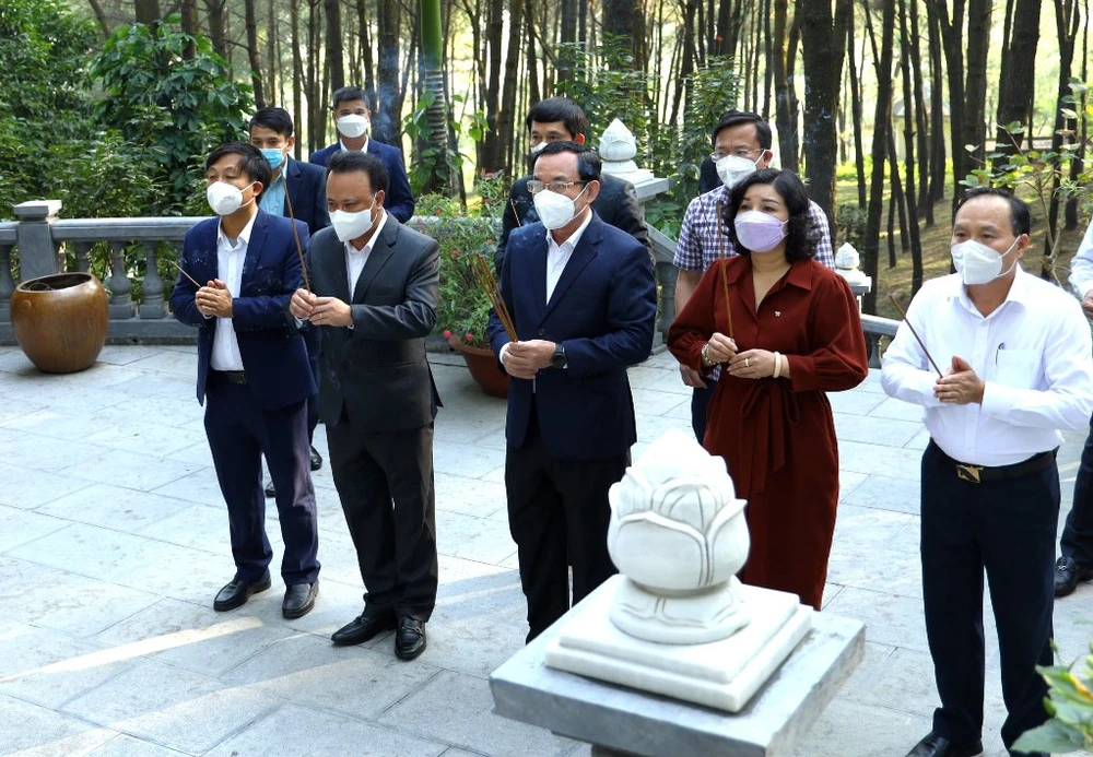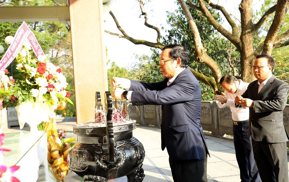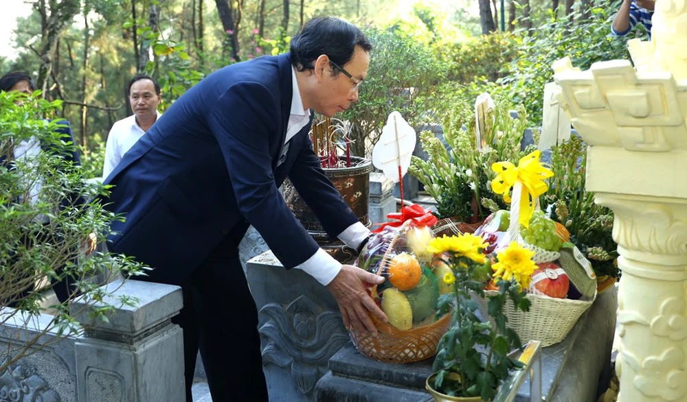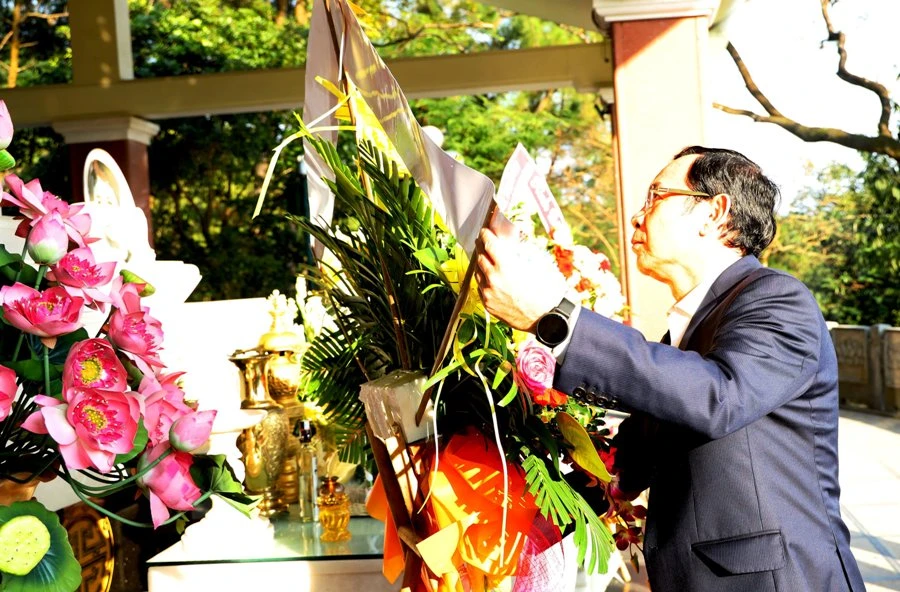 Bí Thư Thành ủy TP.HCM dâng lễ vật lên mộ em trai của Bác Hồ - Nguyễn Sinh Xin (trong khuôn viên Di tích Khu mộ Bà Hoàng Thị Loan).