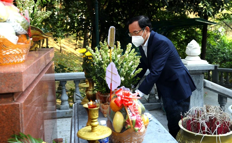 Bí thư Thành uỷ TP.HCM dâng hoa tại phần mộ cụ Hà Thị Hy - bà nội của Chủ tịch Hồ Chí Minh.