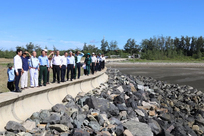 Bí thư Nguyễn Văn Nên cùng nhiều chuyên gia đi khảo sát xã đảo Thạnh An. Ảnh: HV