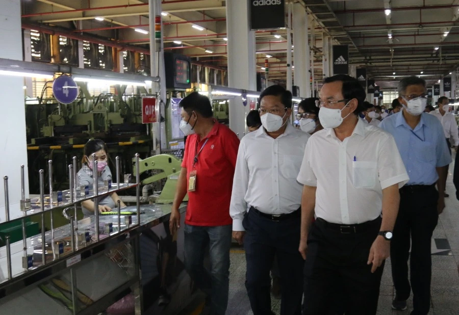Bí thư Nguyễn Văn Nên kiểm tra phòng dịch COVID ở Công ty Pouyuen