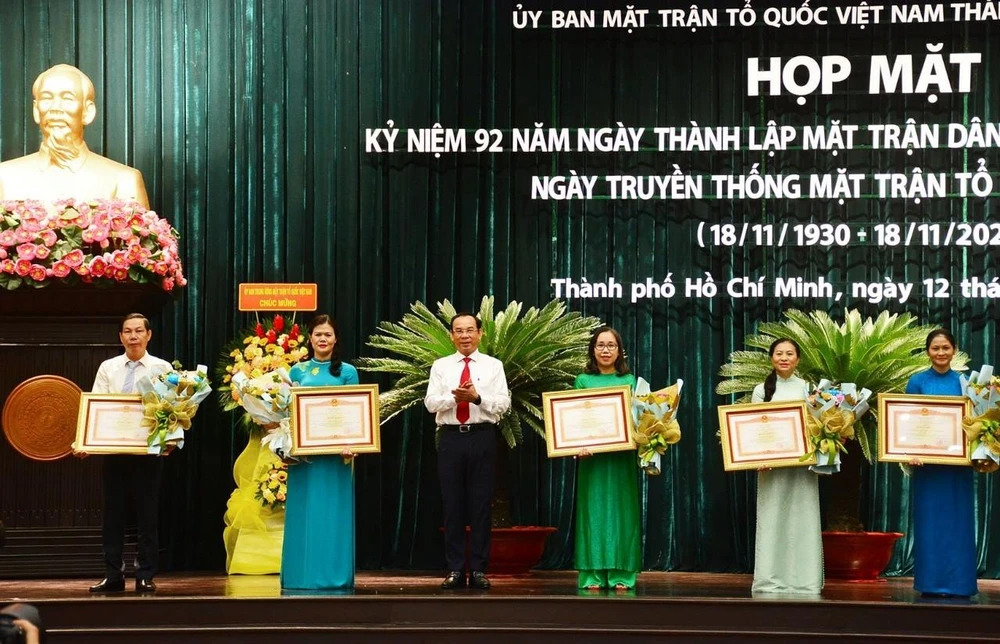 Ngày 12-11, Ủy ban MTTQ Việt Nam TP.HCM tổ chức họp kỷ niệm 92 năm Ngày thành lập Mặt trận Dân tộc thống nhất Việt Nam - Ngày Truyền thống MTTQ Việt Nam (18-11-1930 – 18-11-2022) và trao tặng Kỷ niệm chương “Vì sự nghiệp đại đoàn kết dân tộc”, giải thưởng “Đại đoàn kết toàn dân tộc TP.HCM” lần III.