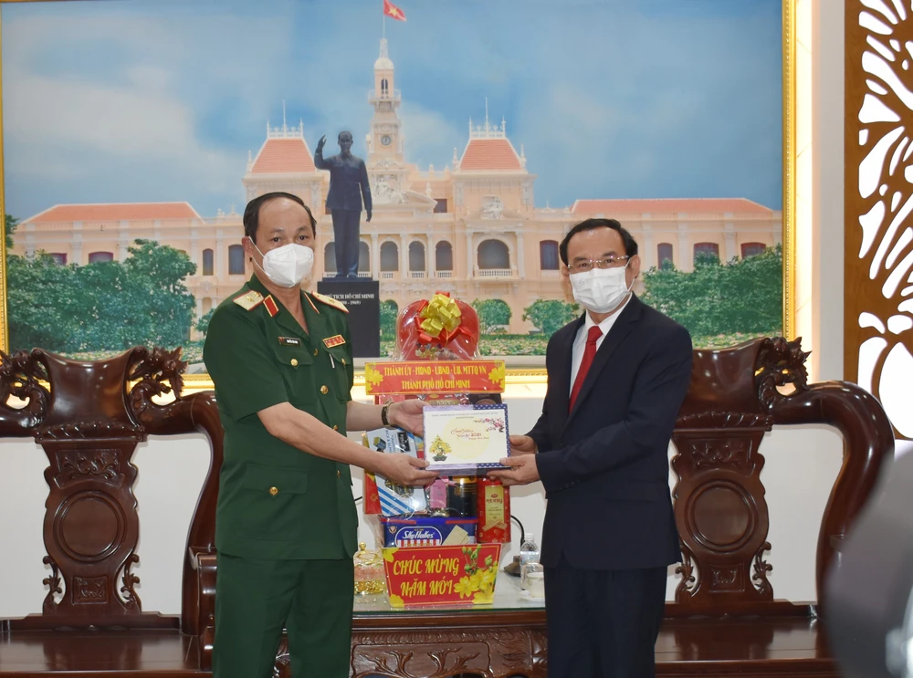 Bí thư Thành ủy TP.HCM Nguyễn Văn Nên thăm và chúc tết Bộ Tư lệnh TP.HCM. Ảnh: PHƯƠNG THÙY