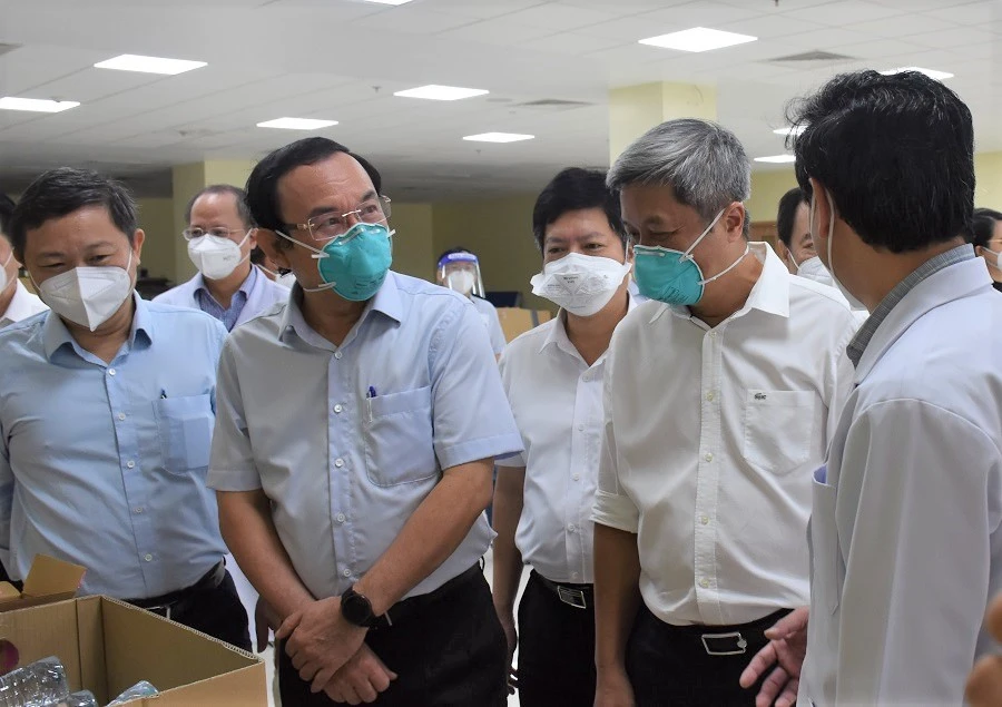 Sáng ngày 8-9, Bí thư Thành ủy TP.HCM Nguyễn Văn Nên đã đến thăm Bệnh viện Hồi sức COVID-19 tại cơ sở 2 Bệnh viện Ung bướu TP.HCM.