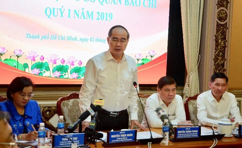 Chiều 2-4, Bí thư Thành ủy TP.HCM Nguyễn Thiện Nhân, Chủ tịch UBND TP Nguyễn Thành Phong cùng nhiều lãnh đạo TP đã có buổi gặp gỡ một số cơ quan báo chí TP và báo chí trung ương đóng trên địa bàn.