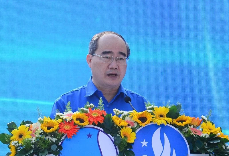 Ông Nguyễn Thiện Nhân, Ủy viên Bộ Chính trị, Bí thư Thành ủy TP.HCM, đã đến dự và trao cờ xuất quân, động viên các chiến sĩ.