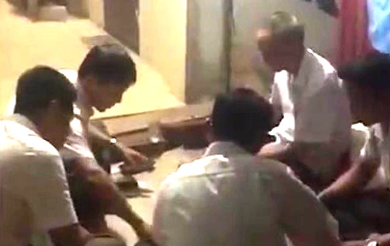 Một số cán bộ đánh bài ăn tiền ngay tại công sở xã Hợp Thành bị người dân quay clip lại tố lên cơ quan chức năng. Ảnh: Cắt ra từ clip