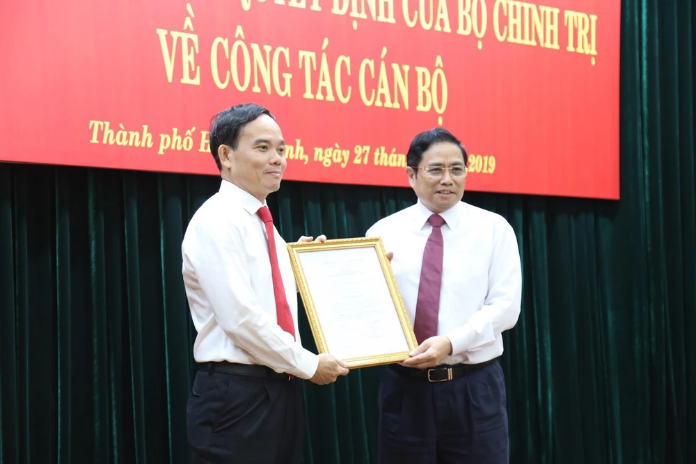 Ông Phạm Minh Chính, Trưởng Ban Tổ chức Trung ương, trao quyết định cho ông Trần Lưu Quang.