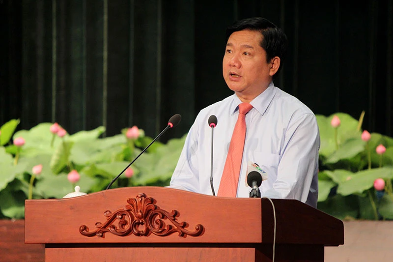 Bí thư Thành ủy TP.HCM Đinh La Thăng phát biểu chỉ đạo tại hội nghị tổng kết 10 năm thực hiện Chương trình tạo nguồn quy hoạch cán bộ lãnh đạo, quản lý trẻ tuổi và Chương trình đào tạo thạc sĩ, tiến sĩ, sáng 19-5. Ảnh: HOÀNG GIANG