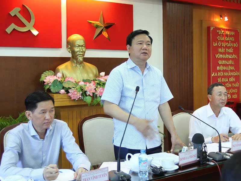 Bí thư Đinh La Thăng đang phát biểu tại buổi làm việc ở quận 2.Ảnh: TTXVN
