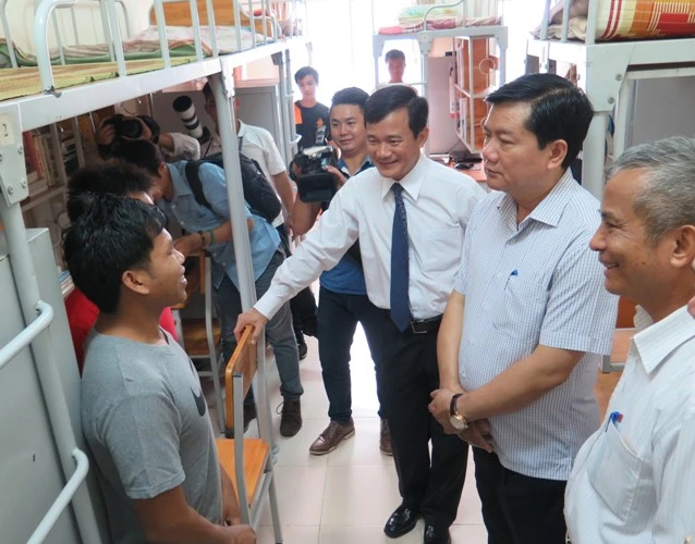 Bí thư Thành ủy thăm KTX Trường ĐH Tôn Đức Thắng. Ảnh: H.TRUNG