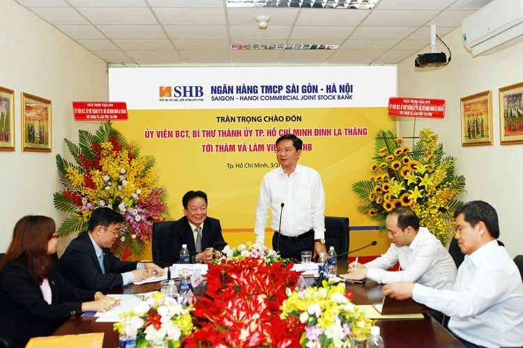 Bí thư Đinh La Thăng trong buổi làm việc hôm nay với SHB.