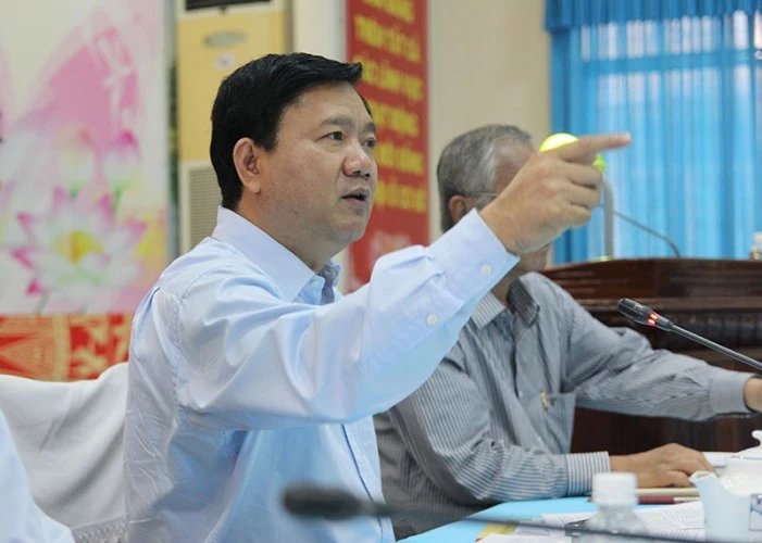 Bí thư Thành ủy TP.HCM Đinh La Thăng truy vấn trưởng Phòng TN&MT huyện Hóc Môn. Ảnh: HOÀNG GIANG
