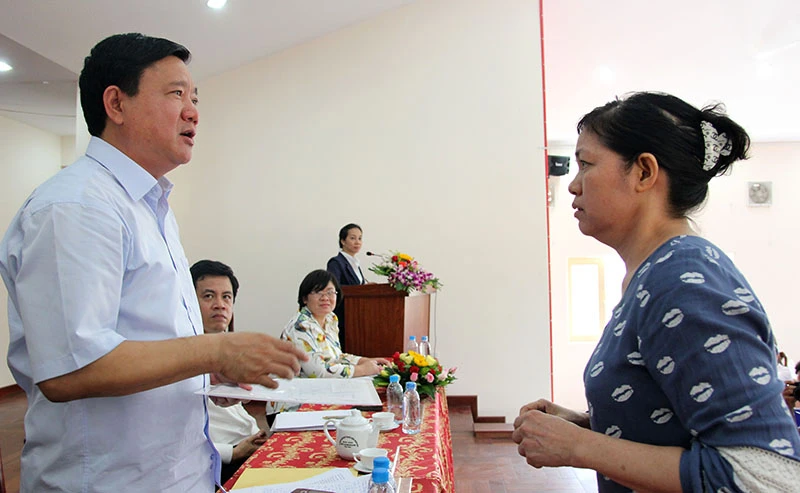 Bí thư Thăng: “Chủ tịch xã Xuân Thới Sơn có đây không? Ý kiến của cử tri phản ánh về Công ty Tấn Minh, anh thấy sao?”.