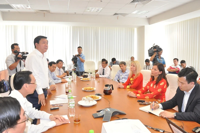Bí thư Thành ủy Đinh La Thăng phát biểu tại buổi làm việc. Ảnh: TÁ LÂM