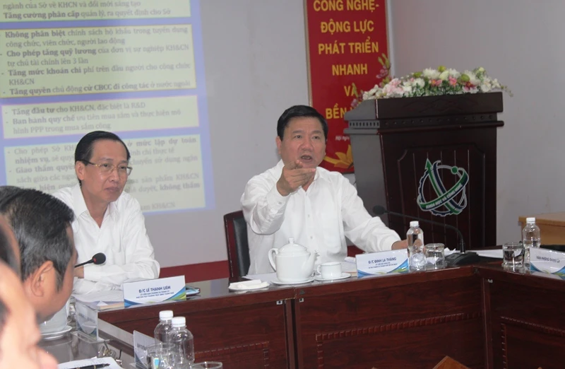 Tại buổi làm việc, Giám đốc Sở Khoa học Công nghệ TP.HCM Nguyễn Việt Dũng cho biết hiện nay các tổ chức khoa học công nghệ bị ràng buộc quỹ lương. Ông Dũng kiến nghị cho phép tăng quỹ lương của đơn vị sự nghiệp KH-CN tự chủ tài chính lên ba lần.
