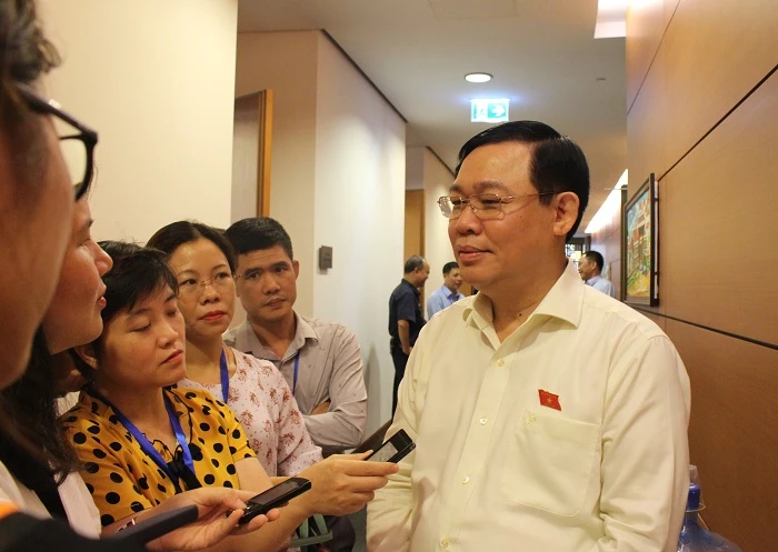 Chiều ngày 8-6, Bí thư Thành ủy Hà Nội Vương Đình Huệ đã trao đổi nhanh với báo chí bên hành lang Quốc hội về dự án tuyến đường sắt Cát Linh – Hà Đông.