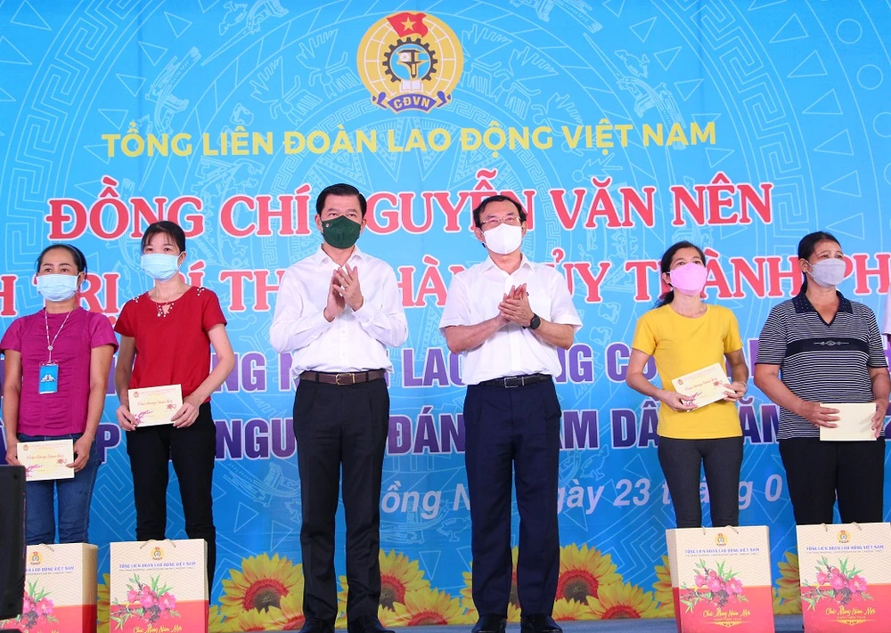 Ngày 23-1, Ủy viên Bộ Chính trị, Bí thư Thành ủy TP.HCM Nguyễn Văn Nên và đoàn công tác của TP.HCM đã đến dự chương trình trao quà Tết tặng công nhân có hoàn cảnh khó khăn tại Đồng Nai.