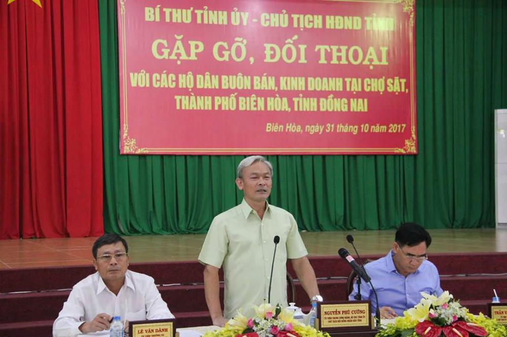 Sáng 31-10, Bí thư Tỉnh ủy, Chủ tịch HĐND tỉnh Đồng Nai Nguyễn Phú Cường đã chủ trì buổi đối thoại với đại diện của gần 300 tiểu thương kinh doanh tại chợ Sặt (phường Tân Biên, TP Biên Hòa) tại Hội trường Thành ủy Biên Hòa.