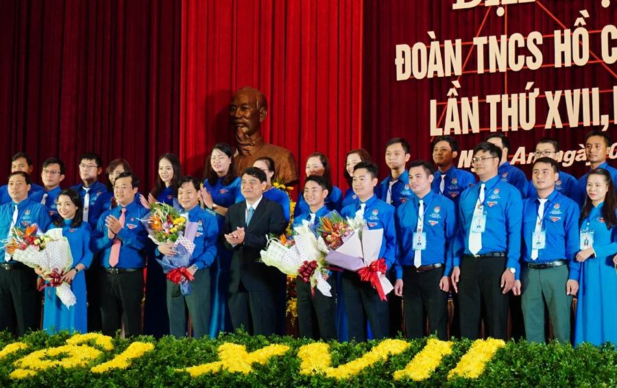 Ban Chấp hành Tỉnh đoàn Nghệ An khóa XVII, nhiệm kỳ 2017-2022 ra mắt tại đại hội.