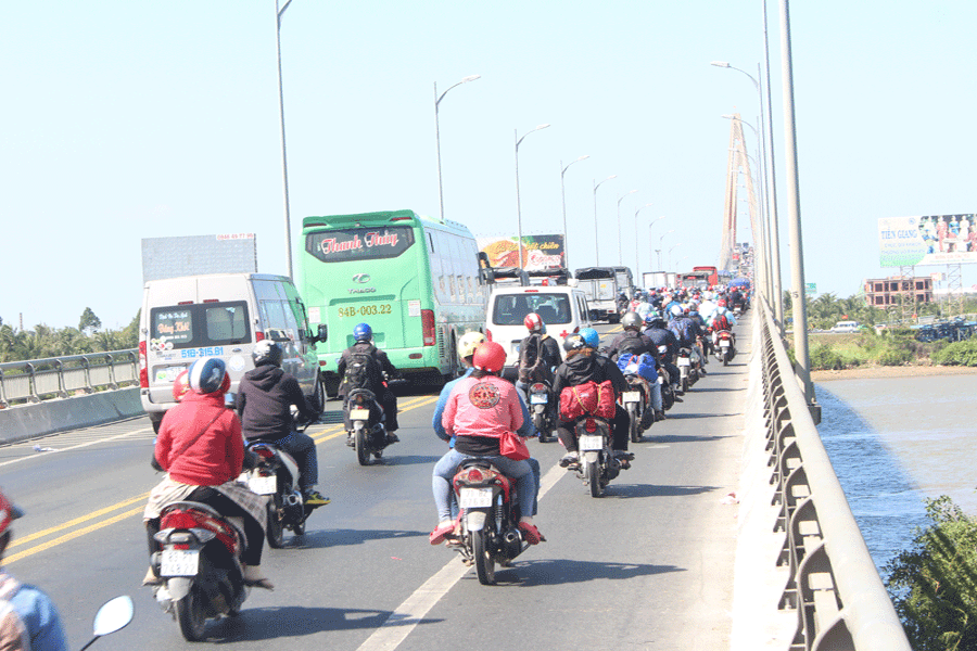 Cầu Rạch Miễu hiện hữu thường xuyên quá tải vào dịp lễ, tết. Ảnh: ĐH