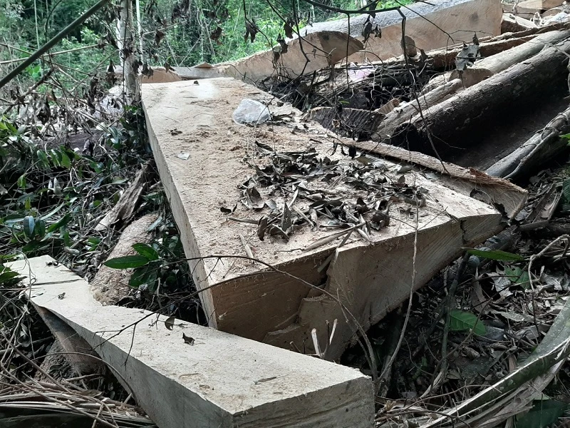Điều đáng nói, trong khi PV phát hiện hàng loạt các cây gỗ lớn bị đốn hạ, nhiều phách gỗ có đường kính đến 1,5m được cắt xẻ ngang nhiên trong rừng, nhưng khi hỏi thì chủ rừng nói chưa phát hiện được và sẽ cho kiểm tra.