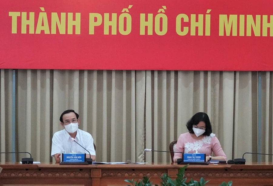 Bí thư Nguyễn Văn Nên tại cuộc họp Ban Chỉ đạo phòng chống dịch COVID-19 và phục hồi kinh tế TP.HCM chiều 22-2. Ảnh: PHƯƠNG THÙY
