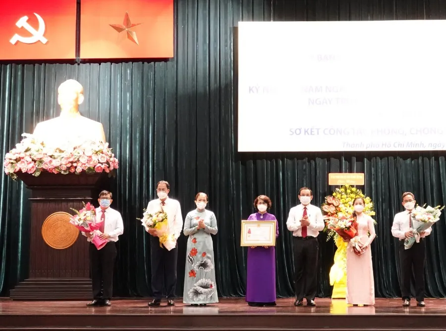 Sáng 17-11, Ủy ban MTTQ Việt Nam TP.HCM đã họp mặt kỷ niệm 91 năm ngày thành lập Mặt trận Dân tộc Thống nhất Việt Nam và ngày truyền thống Mặt trận Tổ quốc Việt Nam (18-11-1930 - 18-11-2021) và và sơ kết công tác phòng, chống dịch COVID-19 đợt thứ 4.