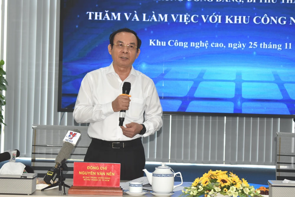 Bí thư Thành ủy Nguyễn Văn Nên cũng mong muốn Khu công nghệ cao TP.HCM tiếp tục phát huy vị trí thuận lợi của mình để làm sao xứng đáng với sự lựa chọn và tạo sự hấp dẫn cho TP.