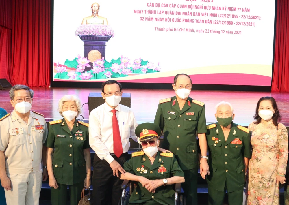 Sáng 22-12, nhân kỷ niệm 77 năm Ngày thành lập Quân đội Nhân dân Việt Nam và 32 năm ngày hội quốc phòng toàn dân, Thành ủy – HĐND - UBND - Ủy ban MTTQ Việt Nam TP.HCM đã gặp mặt cán bộ cao cấp quân đội nghỉ hưu trên địa bàn.