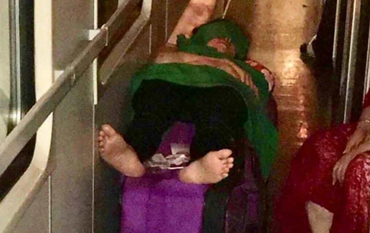 Phải vạ vật ngủ trên hành lang tàu, du khách hết sức mệt mỏi