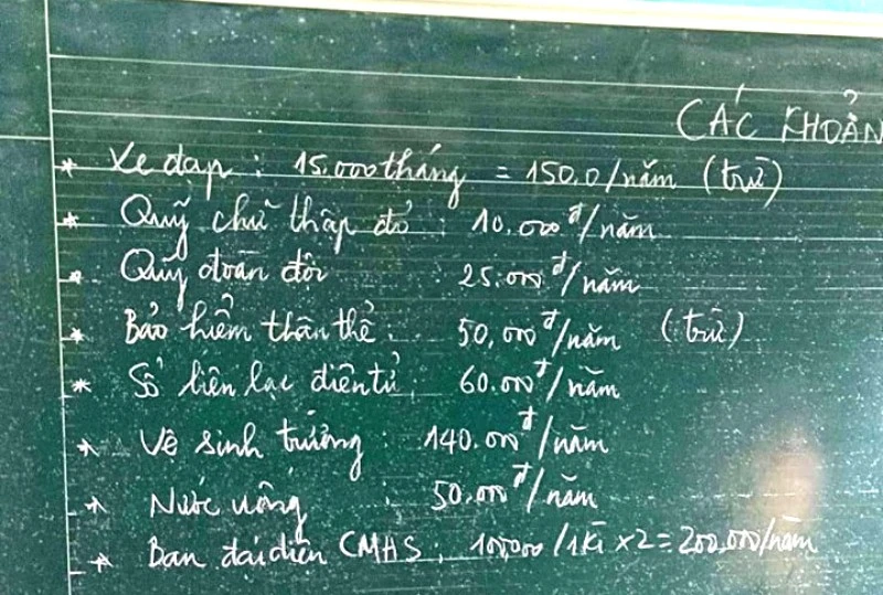 Trước đó như PLO phản ánh, trong buổi họp phụ huynh đầu năm học 2019-2020, giáo viên chủ nhiệm các lớp đã thông báo tới phụ huynh 17 khoản thu.
