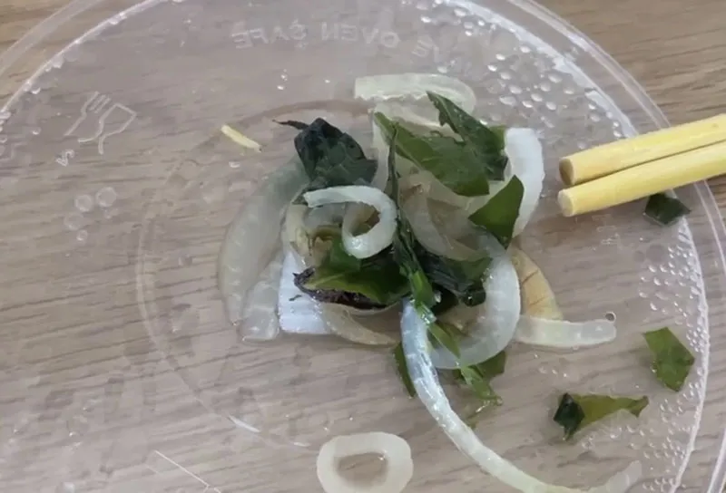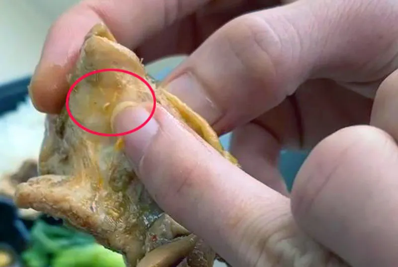 Người cách ly quay clip cho rằng món thịt vịt kho gừng có giòi.