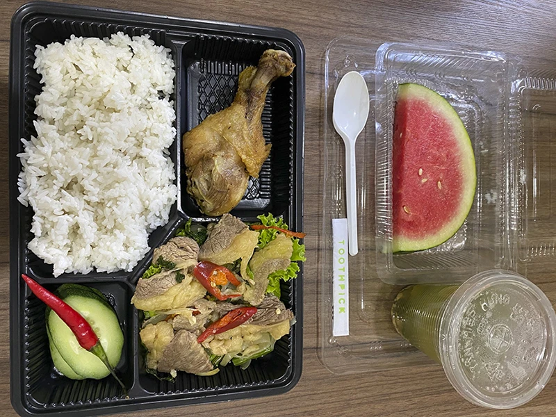 Suất ăn của KS V. dành cho người cách ly. Ảnh do KS V. cung cấp