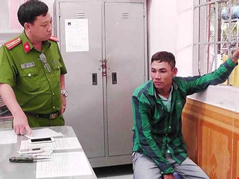 Một nghi can bị công an bắt giữ khi dọa tung ảnh nóng để tống tiền, gạ tình cô giáo vào tháng 2-2017. Ảnh: TD