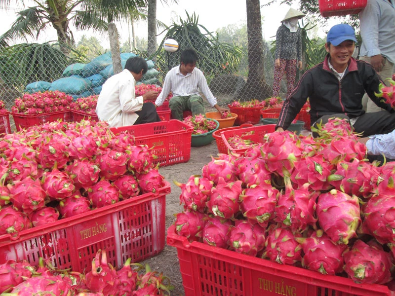 Thu hoạch Thanh Long tại huyện Châu Thành, Long An