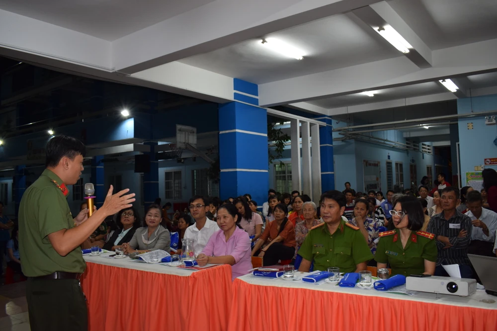 Làm thế nào để phòng chống trộm đột nhập ngày tết là một trong những nội dung được Công an quận Tân Bình chia sẻ với người dân phường 15 quận Tân Bình trong tối 14-1. Gần 200 người dân đã ngồi lại đến giờ phút cuối để nghe những chia sẻ từ công an.