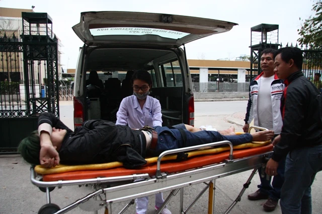 Một đối tượng bị thương ở chân được cơ quan công an đưa đi cấp cứu